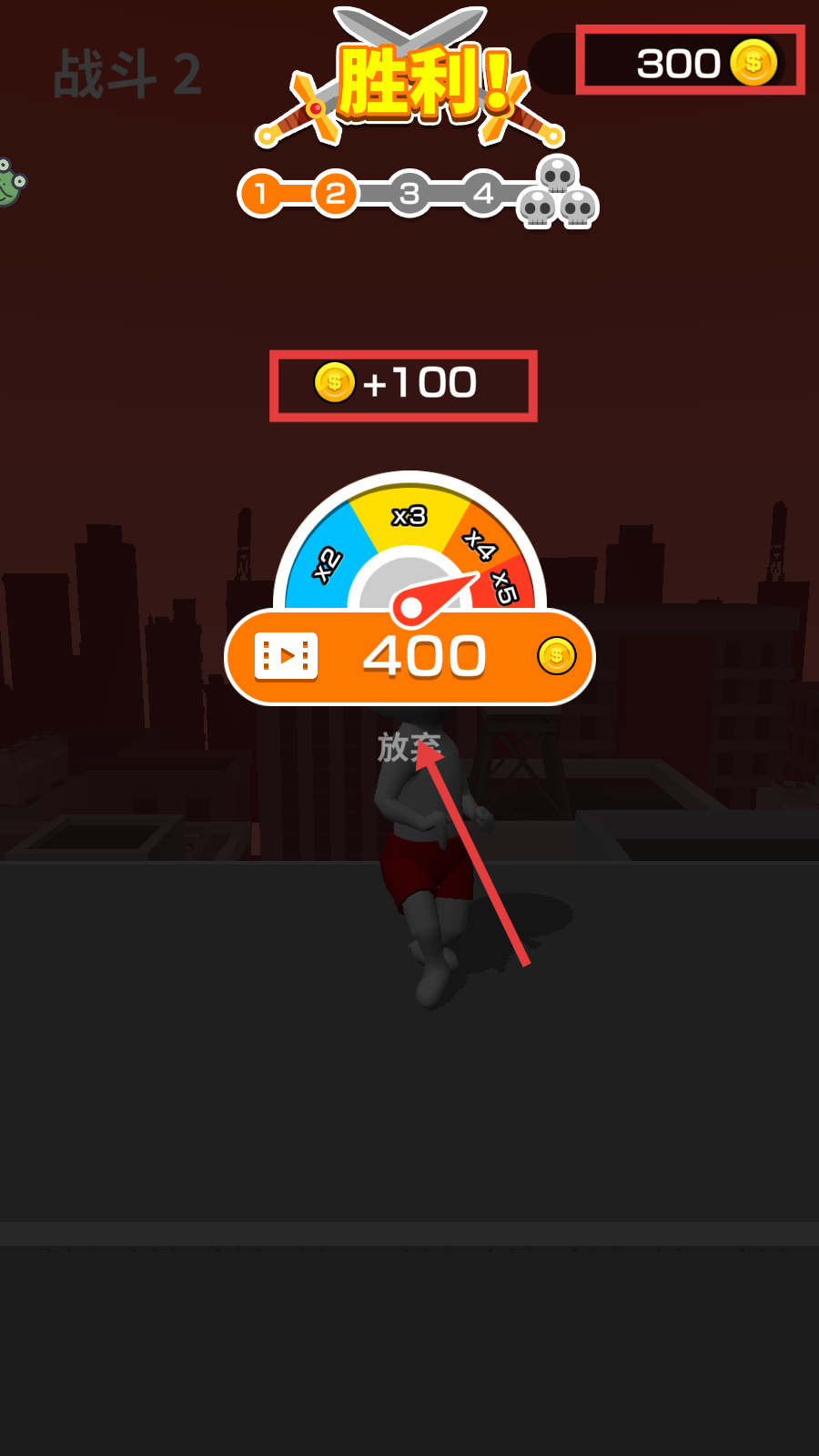 4、战斗胜利后,获取【+100】金币等奖励,积累资源可用于升级或解锁新内容,继续挑战后续关卡。