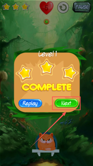 4、出现「Level 1 COMPLETE」点「Next」晋级,或「Replay」刷更高星。