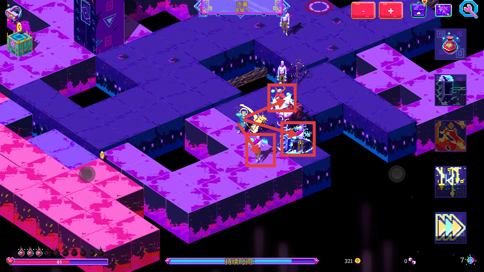 3、在【沙漏-区域7】中应对多个敌人,合理利用技能逐步消灭敌人,推进探索进度。