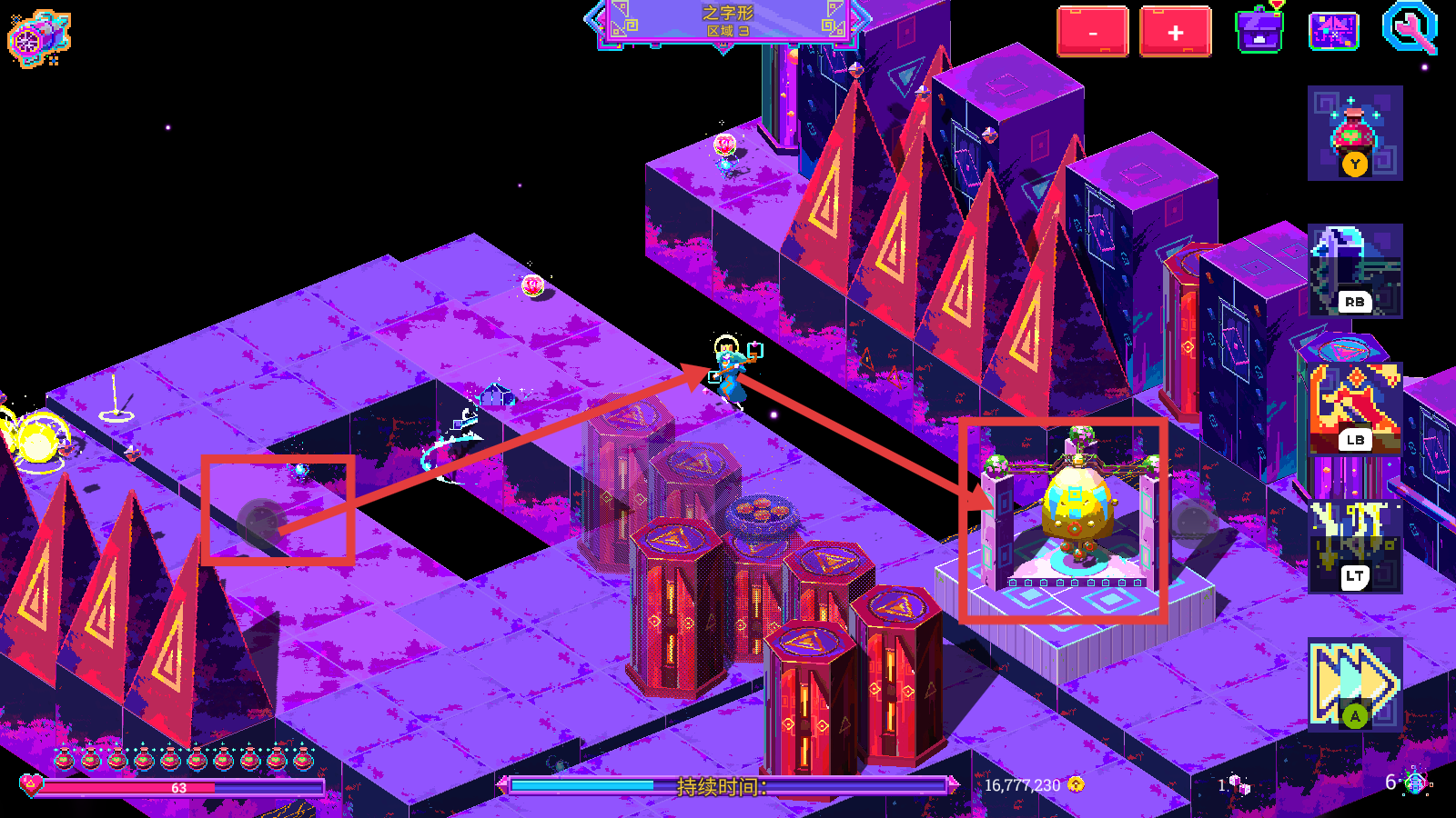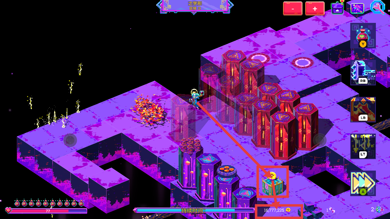 4、前往【之字形-区域3】的特殊装置,继续探索,积累金币至【16,777,230】,推进【持续时间】进度。