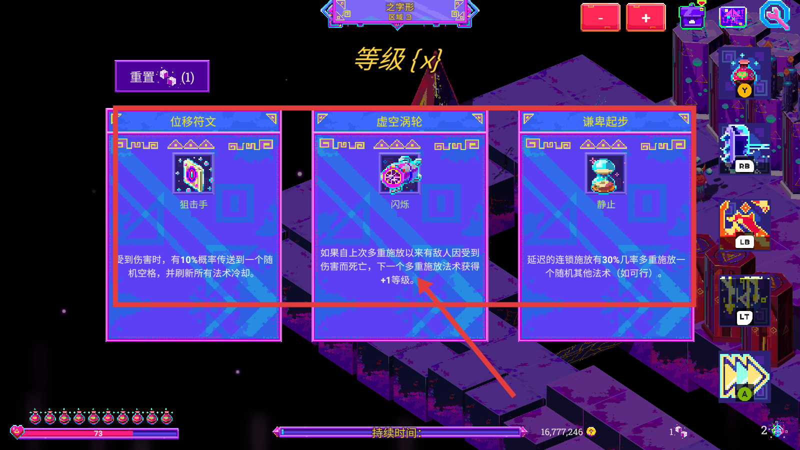 3、升级时选择【虚空涡轮】,利用敌人死亡使多重施法法术+1等级,增强战力,助力探索。