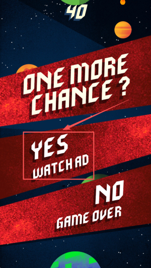 4、掉落后选「YES」看广告续命,或按「NO」结束游戏。