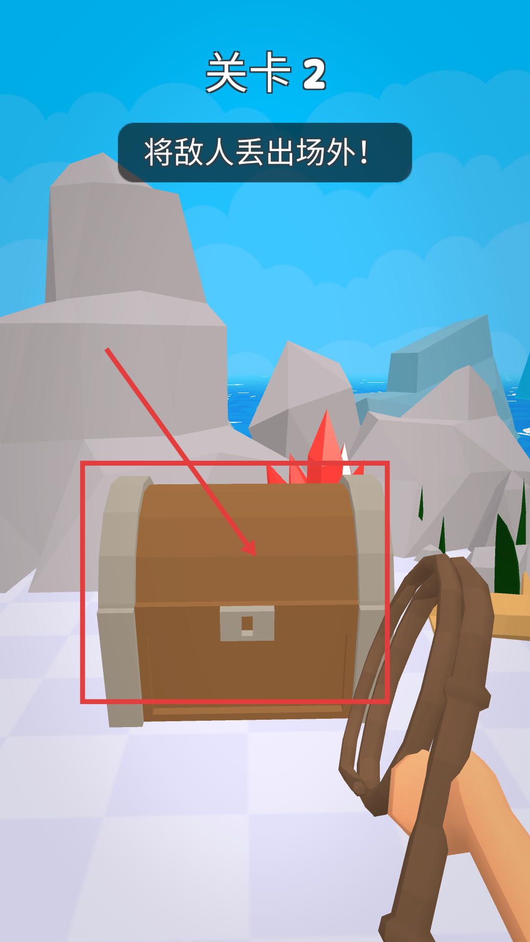 2、按照“将敌人丢出场外”的提示,精准操作将敌人扔出平台,使其掉落海中,完成关卡目标。