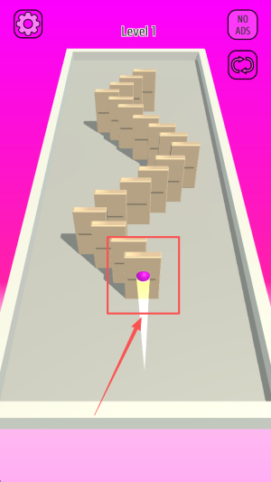 2、拖动瞄准,松手发射,一击摧毁机关即可过关。