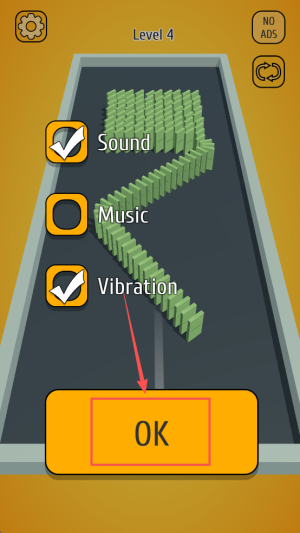 4、若卡关,点“ADS”看广告得提示,或进“Level 4”设置页关闭音乐再开“OK”重试。