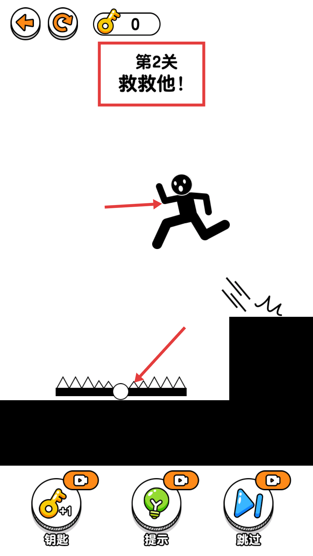 2、挑战【第2关-救救他】时,留意场景中的【尖刺陷阱】,这是需要规避的危险障碍。