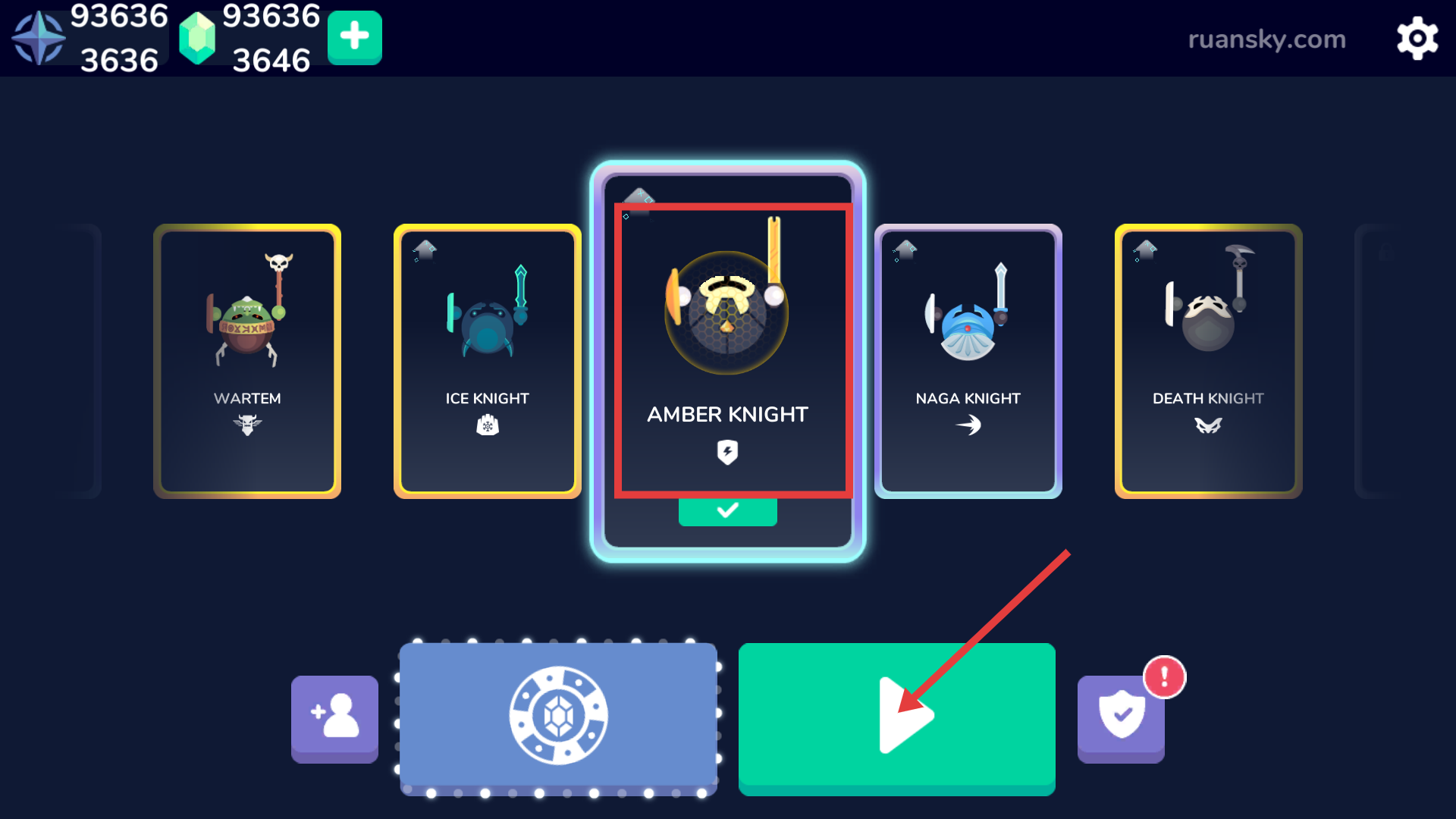 1、选择【AMBERKNIGHT】角色,点击绿色按钮进入游戏,开启骑士对战。