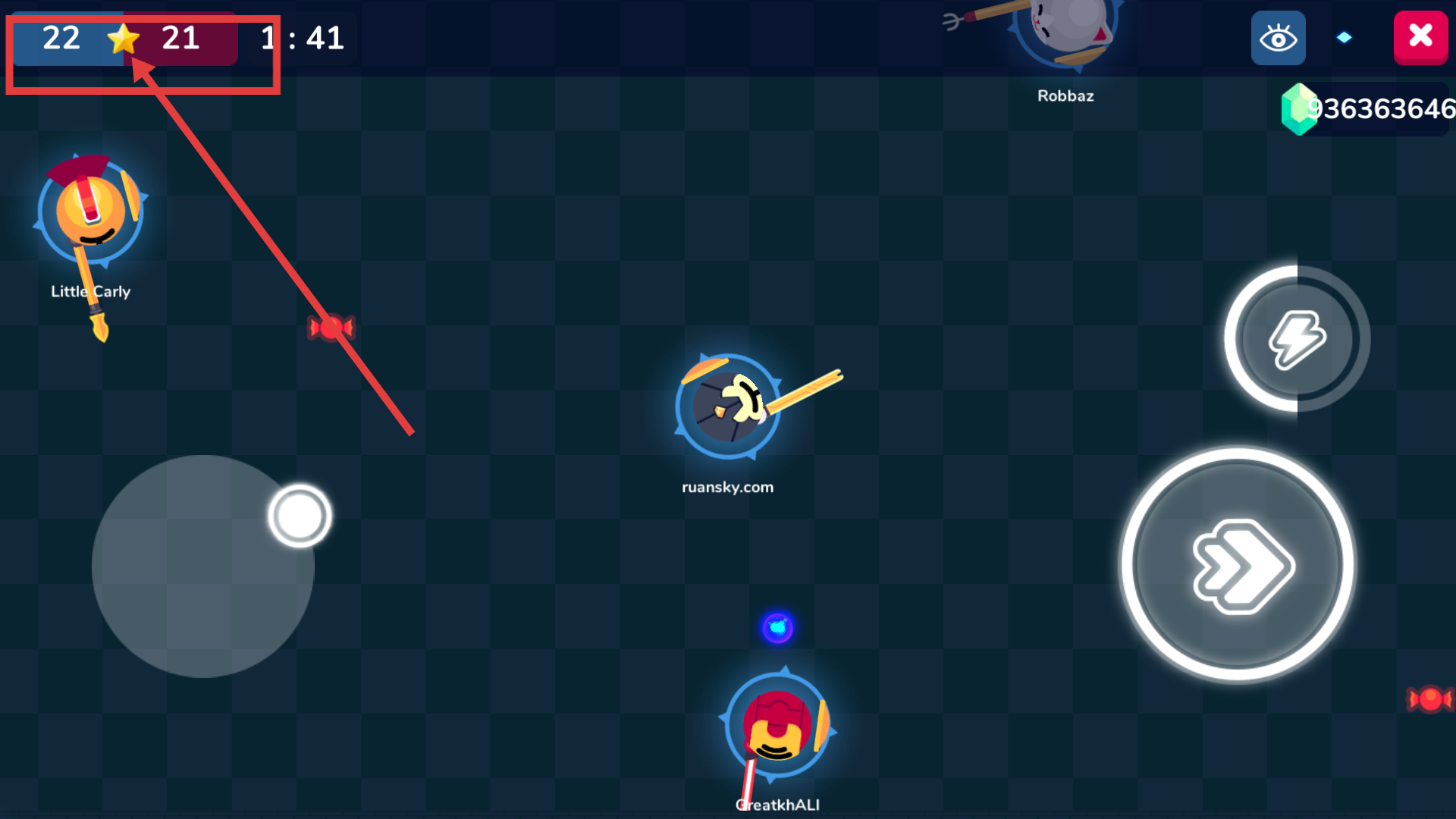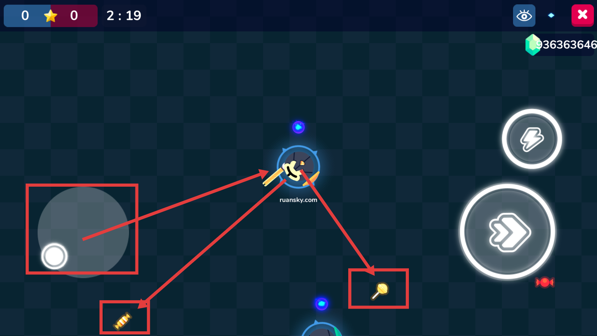 4、新手引导自然融入实战,无独立教程环节,通过对战即时提示掌握武器切换、能量收集,搭配低门槛虚拟摇杆+单按钮设计。