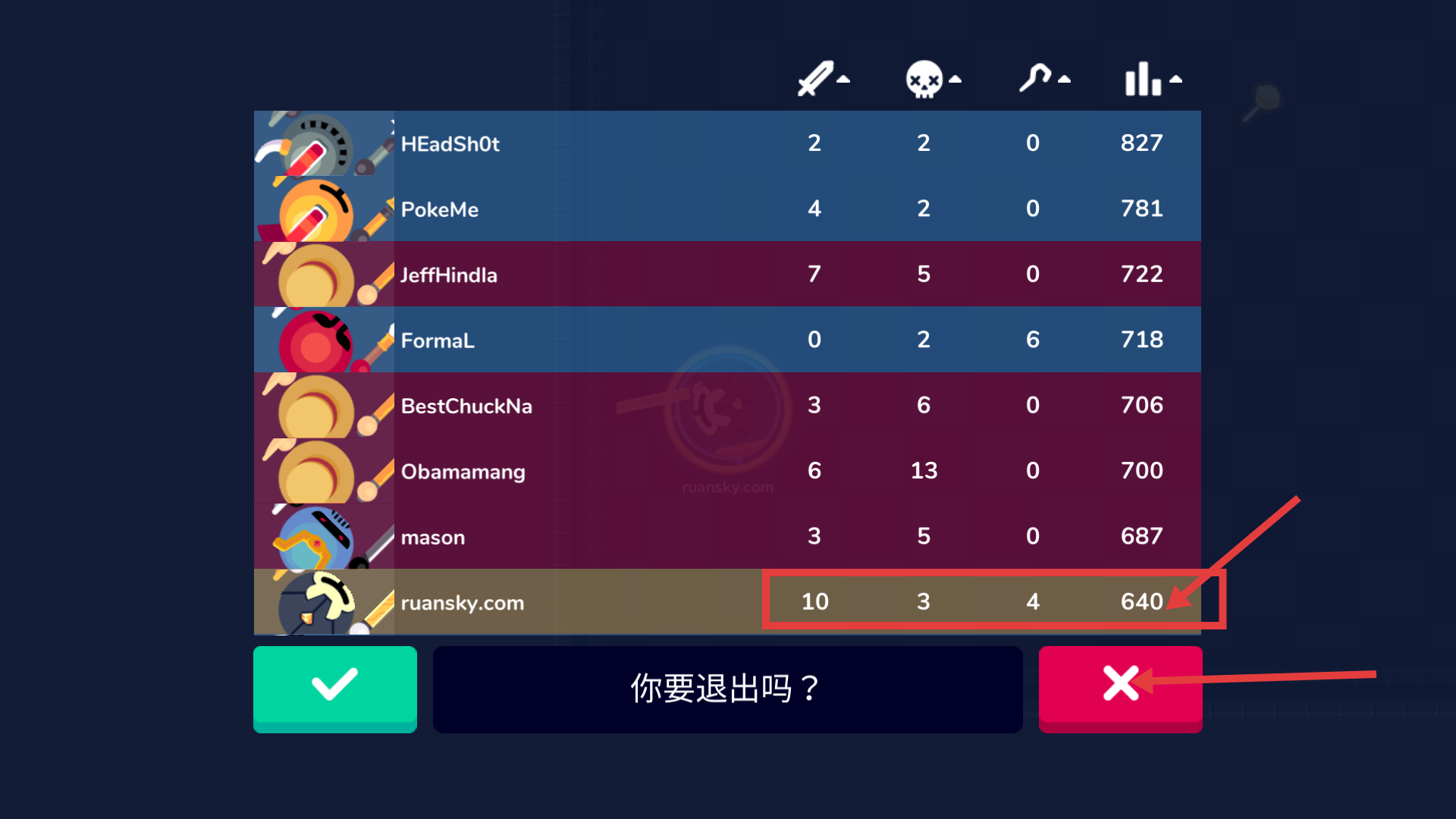4、战斗结束后查看战绩(如10-击杀3-死亡640-积分),根据需求选择是否退出,积累经验提升排名。