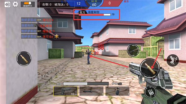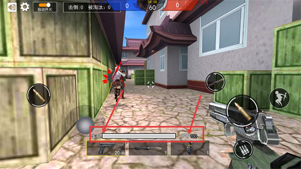 2、战斗中关注【生命】和【护甲100】状态,切换【手枪】等武器,开启自动开火精准攻击。