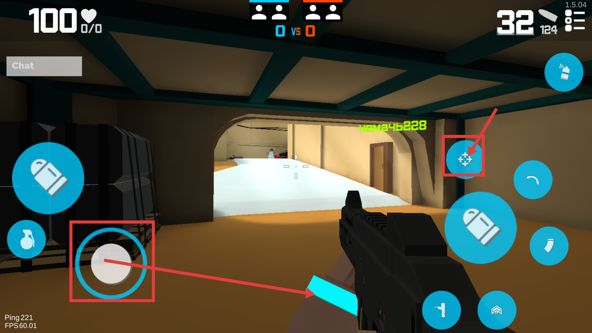 2、通过左侧移动盘操控角色移动,点击右侧瞄准键瞄准目标,为战斗做好准备。
