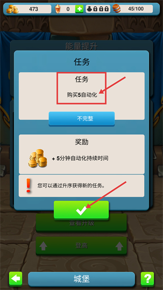 1、完成【购买5自动化】任务,领取奖励可+5分钟自动化持续时间,助力资源高效生产。