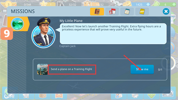 1、点击【Show-me】执行【Send-a-plane-on-a-Training-Flight】任务,完成训练飞行以积累飞行经验。