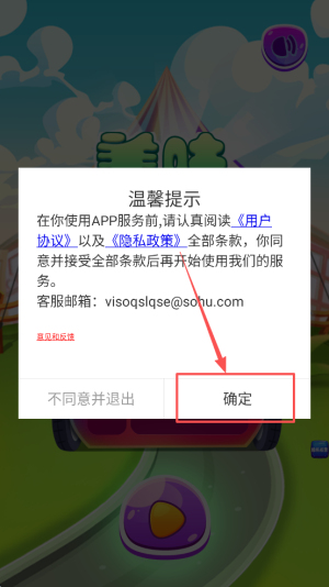 1、阅读《用户协议》和《隐私政策》后点“确定”进入游戏。