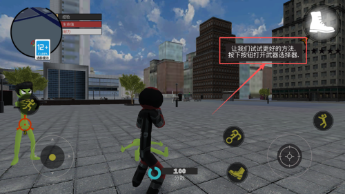 3、使用武器:在屏幕右上角打开武器选择器,选择并装备不同的武器来对抗敌人。