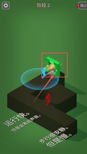 3、开始操作:在阶段1界面,查看推和移动提示,滑动画面跳过障碍物。