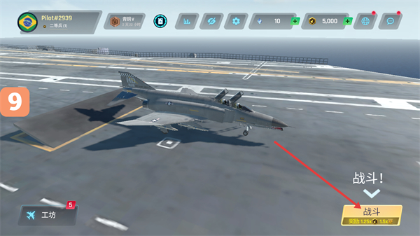 1、点击右下角【战斗】按钮,进入战斗模式,利用航母起飞优势开启空战任务,获取【1.25X-奖励】与经验。