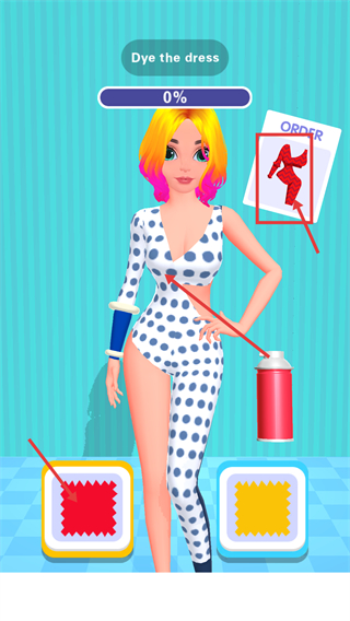 2、参与【Dye-the-dress】任务,选择红色染料,按照【ORDER】图标给服装染色。