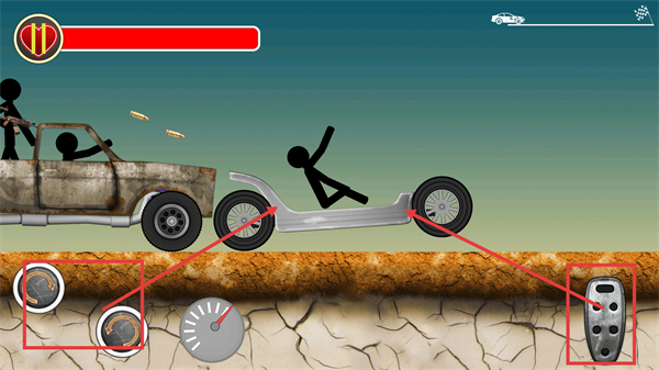 一款横版火柴人主题的飙车射击竞速作品。