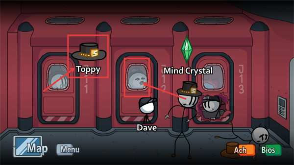 3、进入内部场景后,关注【Toppy】帽子和【MindCrystal】,与角色互动,解锁新剧情和道具。