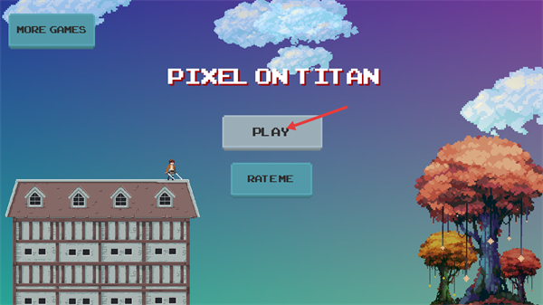 1、在【Pixel-on-Titan】主界面,点击【PLAY】按钮,开启像素风格的战斗冒险游戏。