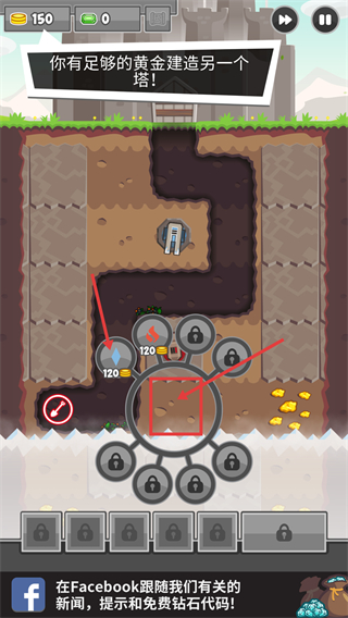 3、当金币充足时,选择合适的塔(如消耗120金币的功能塔)进行建造,强化防御火力,阻断敌人行进路径。