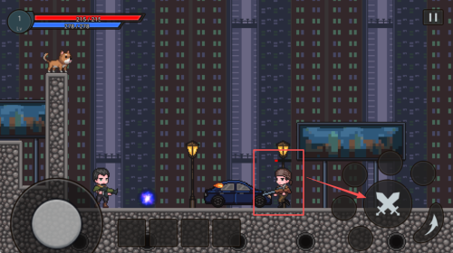 1 、横屏像素闯关:以横屏像素风格打造闯关游戏,画面充满复古感,操控角色在城市中冒险,视觉体验独特。