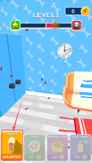 1、玩法灭蟑闯关:清除入侵屋子的蟑螂,通过击杀数量累积分数,每完成一次高效灭蟑都满是成就感,适配解压休闲场景。