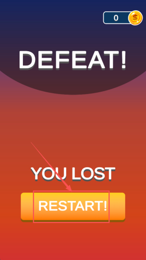 4、失败重开:出现DEFEAT YOU LOST RESTART时,点击RESTART重开挑战。