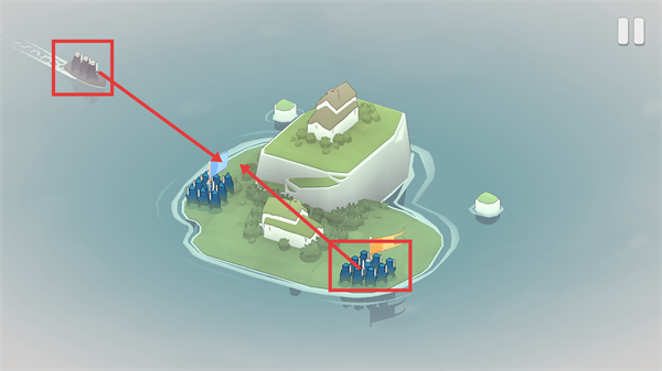 2、在岛屿战斗中,关注船只和部队部署,合理调动蓝色部队,抵御敌人进攻,把控岛屿战局。