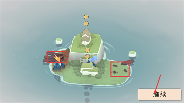 4、战斗胜利后获取金币奖励,点击【继续】推进冒险,探索更多岛屿积累资源。