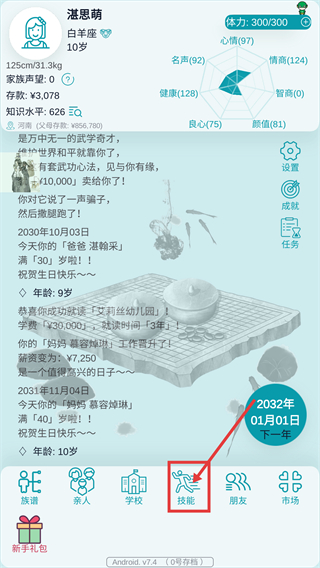 2、属性主导人生走向,无限体力支持针对性加点,轻松满足职业解锁、学历提升(考研考博)的属性要求,梦想人生触手可及。