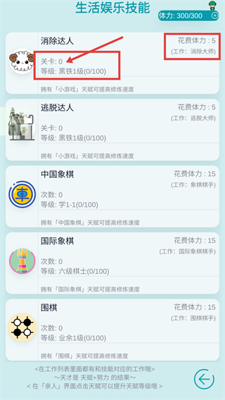 2、选择【消除达人-关卡0-黑铁1级】,花费体力5,开始技能修炼。