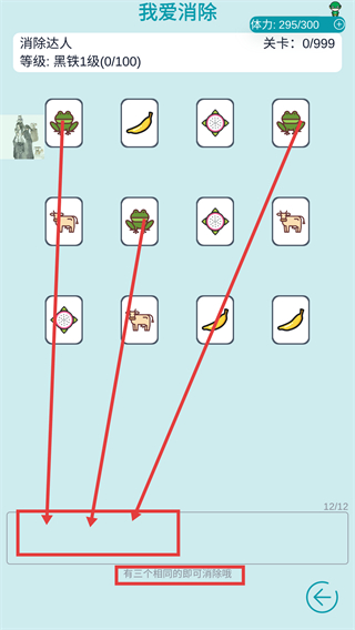 3、在我爱消除游戏中,遵循【有三个相同的即可消除哦】的规则,消除相同图案提升技能。