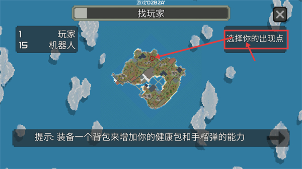 2、在找玩家界面,选择地图上的出现点,开局落点影响资源获取,可优先选择资源丰富区域。