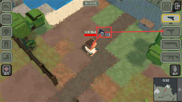 3、冒险中拾取武器和弹药,点击右侧武器栏更换武器,提升战斗能力,应对敌人攻击。