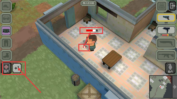 4、战斗中拾取医疗道具,使用后恢复生命值,注意左侧医疗道具数量,合理利用保持生存。