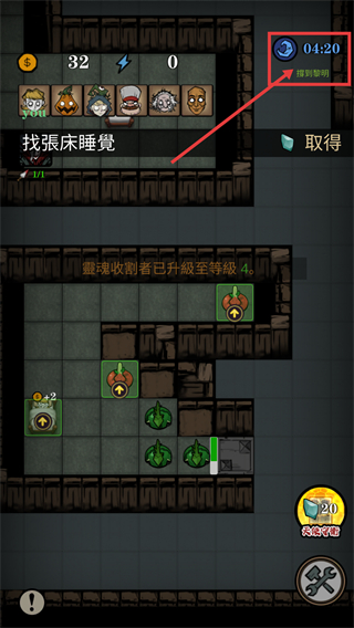 4、关注界面的【04:20】-【撑到黎明】计时,当【灵魂收割者】升级至等级-4时,继续维持防御布局直至计时结束。