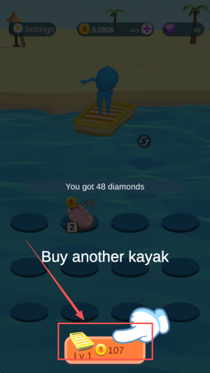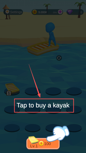 1、购买初始:在Settings 5.000K界面点击Tap to buy a kayak获得LV.1皮划艇。