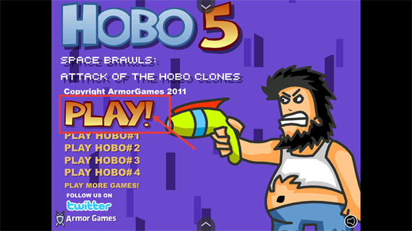 1、进入【HOBO-5】的启动界面后,点击醒目的【PLAY!】按钮即可开始游戏,也可选择游玩该系列前作来熟悉玩法。
