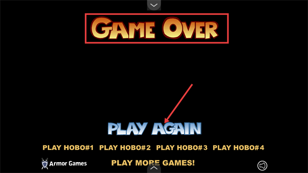 4、若出现【GAME-OVER】界面,点击【PLAY-AGAIN】按钮可重新挑战,需总结前次失败经验调整战斗策略。