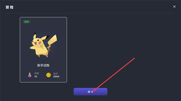 1、【冒险】界面的【新手试炼】难度为【简单】,完成可获【经验-10】-【金币-2000】,点击【战斗】即可开启该试炼挑战。