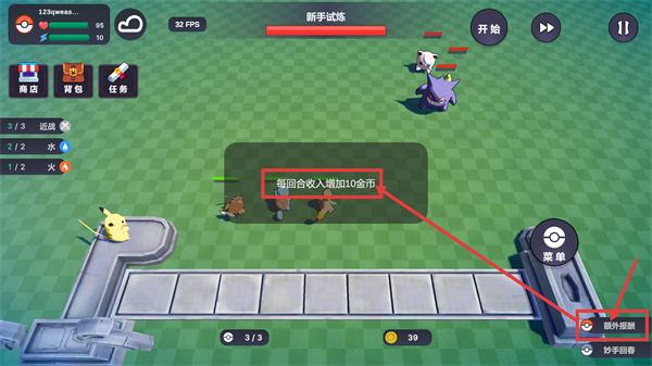 3、【新手试炼】对战中触发【每回合收入增加10金币】效果,搭配【额外报酬】能有效提升对局内的金币获取效率。