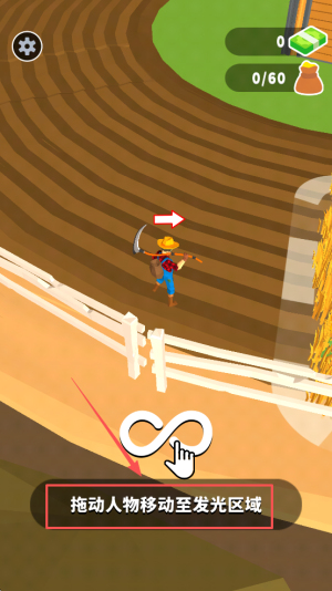 2、移动角色:在0/60界面拖动人物到发光区域。