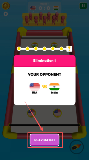 2、选择对手:在Elimination1界面点击PLAYMATCH迎战USA或India。