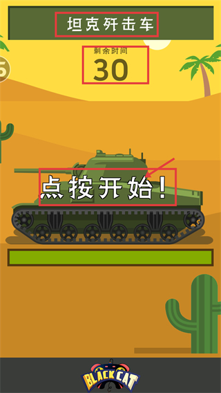 2、在【坦克歼击车】游戏中,趁【剩余时间-30】点击【点按开始】,启动操作积累得分,推进奖励获取进度。