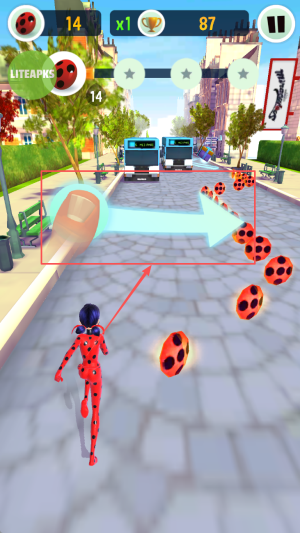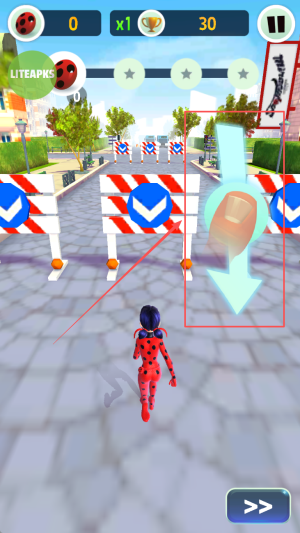 1 、选角色闯巴黎:选择瓢虫少女或黑猫角色,在巴黎街道开启跑酷,操控角色灵活躲避路灯、围栏等各类障碍,持续前进。