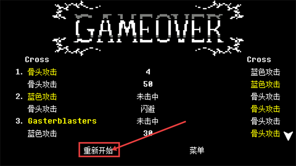 4、出现【GAMEOVER】界面时,选择【重新开始】,复盘攻击与闪避操作,调整策略后再次挑战当前对局。