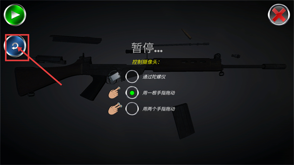 4、在暂停界面中,选择【控制摄像头-用一根手指拖动】的方式,便于更清晰地查看枪械部件,辅助后续的组装或拆解。