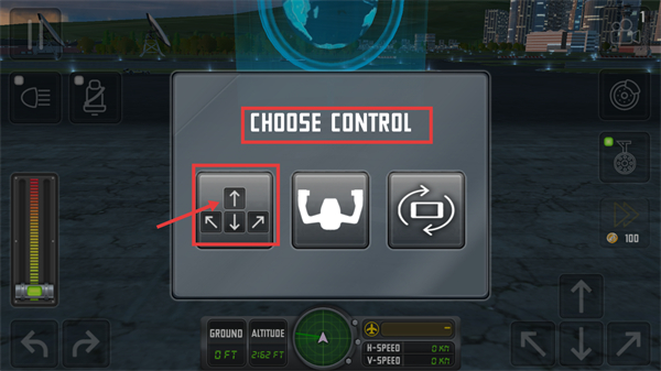 2、在【CHOOSE-CONTROL】界面,选择方向键样式的控制选项,该方式更易精准操控飞机的移动状态。